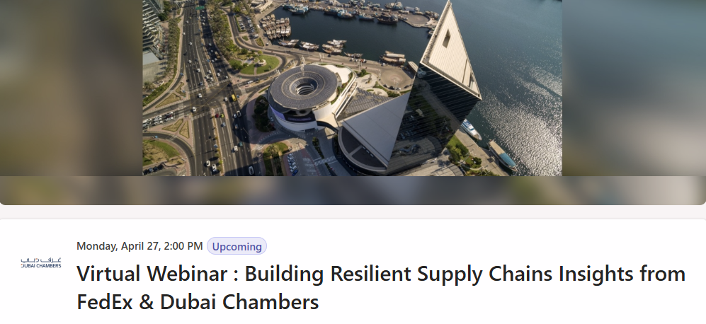 Dubai Chambers & FedEx look forward to having you join them for an engaging discussion and practical insights on building supply chains that are ready for what’s next.